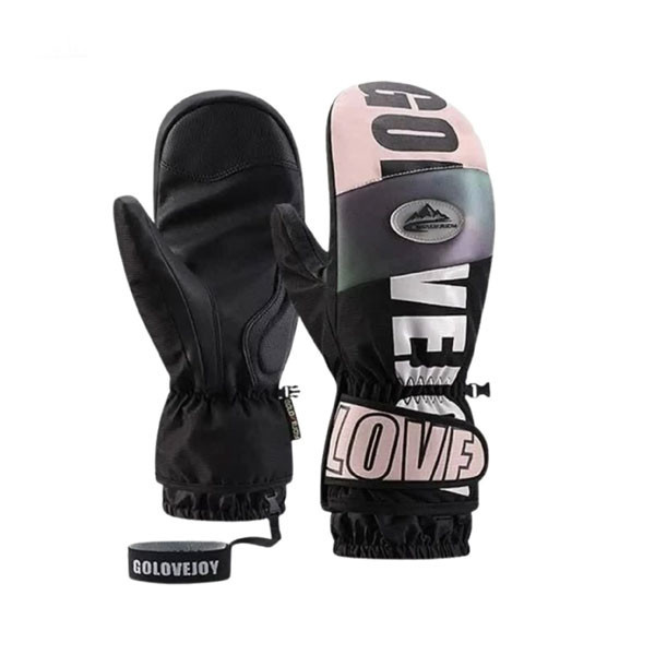 دستکش ضد آب دو انگشتی اسکی GOLOV EJOY کد SK34 رنگ مشکی صورتی
