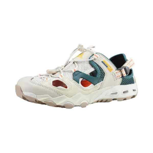 شما با این صندل توری می توانید پیاده روی راحتی را در مسیر دره و داخل رودخانه داشته باشید. این کفش جلو بسته بوده و سه لایه مقاوم برای محافظت از نوک انگشتان و وارد شدن ضربه در قسمت جلوی کفش قرار داده شده است. برای تنفس پا و گردش هوا در کفش و جلوگیری از عرق کردن و لیز خوردن پا در کفش قسمت های کناری آن باز می باشد که این طراحی علاوه بر تنفس پذیری باعث می شود که در مسیرهای رودخانه آب به سرعت از کفش شما خارج شود. همچنین کفش هومتو مدل 630261B دارای سگکی در کنار قوزک پا می باشد که میتوان با آن میزان آزاد بودن کفش را در قسمت مچ پا تنظیم کرد. کفی این کفش لژدار بوده که نرم و اسفنجی می باشد. همچنین قسمت کف کفش دارای عاج می باشد که مانع از لغزش و سر خوردن شما می شود.