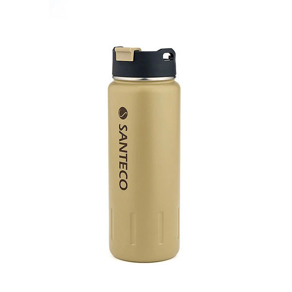 ماگ 710 میلی لیتری KOTKA محصولی دیگر از کمپانی SANTECO بوده که به صورت تخصصی به تولید ماگ، فلاسک و قمقمه پرداخته است. ماگ سانتکو دوجداره و دارای ساختار عایق خلا از جنس استیل ضد زنگ 18/8 است و قادر است دمای نوشیدنی ها را تا 12 ساعت گرم و تا 24 ساعت سرد نگه دارد. پوشش روی بدنه این محصول از رنگ پودری استفاده شده که علاوه بر زیبایی باعث می شود به سادگی از دستان شما لیز نخورد. همچنین به دلیل دوجداره بودن، در صورت استفاده مایعات بسیار سرد و بسیار گرم به دست شما هیچ گونه آسیبی وارد نمی شود و از دیگر ویژگی های بدنه آن می توان به قابلیت ضد تعریق اشاره کرد، به طوری که زمان نگهداری آب یخ داخل آن، از خیس شدن و عرق بدنه جلوگیری می کند. این لیوان مجهز به یک درب پیچی بزرگ جهت شستشو و پر کردن آسان و یک درپوش از جنس پلی پروپیلن در قسمت دهانی می باشد که می توان به راحتی در سریع ترین زمان ممکن با یک دست باز و یا بسته نمود. از دیگر ویژگی های آن می توان به داشتن واشر پلاستیکی اشاره کرد که از بیرون ریختن و نشت مایعات جلوگیری کرده و باعث شده با خیالی آسوده از ماگ خود استفاده کنید. همنیطور حلقه ای برای اتصال کارابین و آویزان نمودن ماگ، بر روی درب این محصول طراحی شده است.