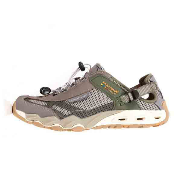 شما با این صندل توری میتوانید پیاده روی راحتی را در مسیر دره و داخل رودخانه داشته باشید. این کفش جلو بسته بوده و سه لایه مقاوم برای محافظت از نوک انگشتان و وارد شدن ضربه در قسمت جلوی کفش قرار داده شده است. برای تنفس پا و گردش هوا در کفش و جلوگیری از عرق کردن و لیز خوردن پا در کفش قسمت های کناری آن باز می باشد که این طراحی علاوه بر تنفس پذیری باعث می شود که در مسیرهای رودخانه آب به سرعت از کفش شما خارج شود. همچنین کفش تابستانی اسنوهاک مدل BRUNY دارای سگکی در کنار قوزک پا می باشد که میتوان با آن میزان آزاد بودن کفش را در قسمت مچ پا تنظیم کرد. کفی این کفش لژدار بوده که نرم و اسفنجی می باشد. همچنین قسمت کف کفش دارای عاج می باشد که مانع از لغزش و سر خوردن شما می شود. در زیره این کفش نیز، سوراخ هایی تعبیه شده است که برای تخلیه هر چه سریعتر آب می باشد.
