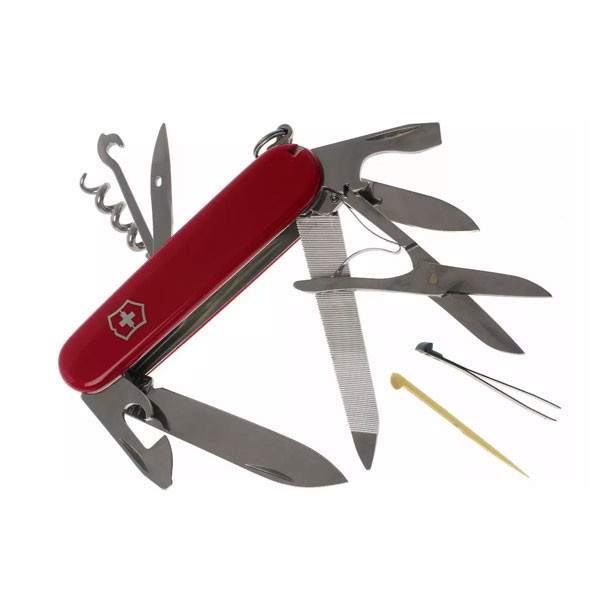 چاقوی ویکتورینوکس مدل MOUNTAINEER با ابزارهای گوناگونی که دارد، حقیقتا میتواند نقش یک جعبهابزار را برای شما بازی کند. همه ابزار این محصول از جنس فولاد بسیار باکیفیتی بوده که دوام بسیار مناسب و بالایی برای آن ایجاد خواهد کرد. وجود ابزار های پرکاربرد در این چاقو باعث میشود تا این محصول برای کارهای فنی انتخابی مناسب باشد. ویکتورینوکس برای باز و بسته کردن پیچها با این چاقو نیز، پیچگوشتی دو سو در نظر گرفته است. برای این محصول دو عدد چاقو در دو سایز متفاوت، یک عدد اره ، درب بازکن و چوب پنبه بازکن نیز طراحی شده است. MOUNTAINEER با دارا بودن جنسی از استیل ضد زنگ و دستهای از جنس پلاستیک مقاوم و همچنین 18 عملکرد، از دوام بالایی برخوردار بوده که تا سالهای سال نیز، کارایی خود را حفظ خواهد کرد. چاقوی ویکتورینوکس مدل MOUNTAINEER ابزاری متنوع و کاربردی دارد که آن را به مجموعهای کامل و مناسب برای شما میسازد.